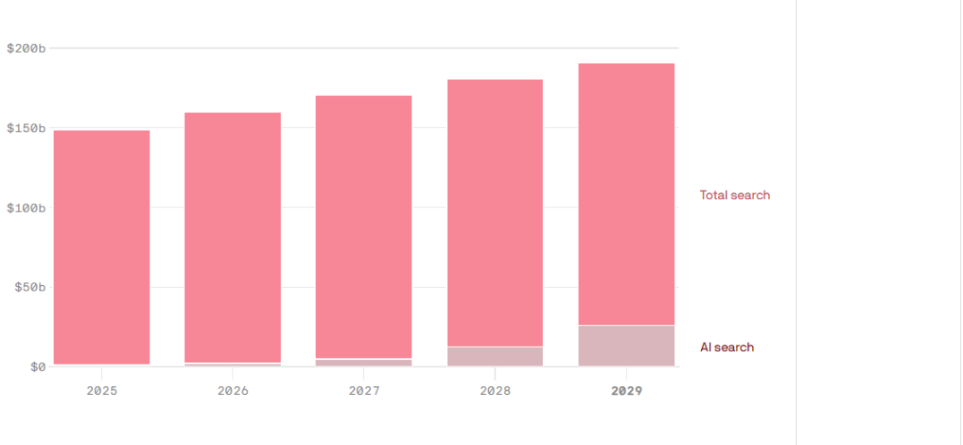 全球搜索广告市场在 AI 时代迎来重大变革。据 eMarketer 数据,美国 AI 搜索广告支出预计: