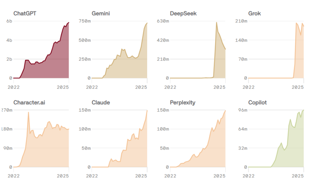 AI 平台 | 月访问量(桌面 + 移动端) |
