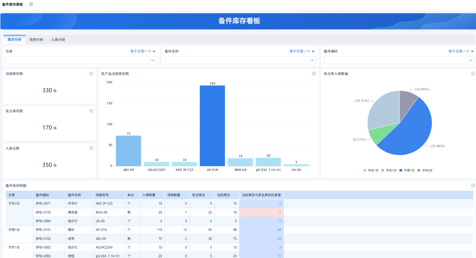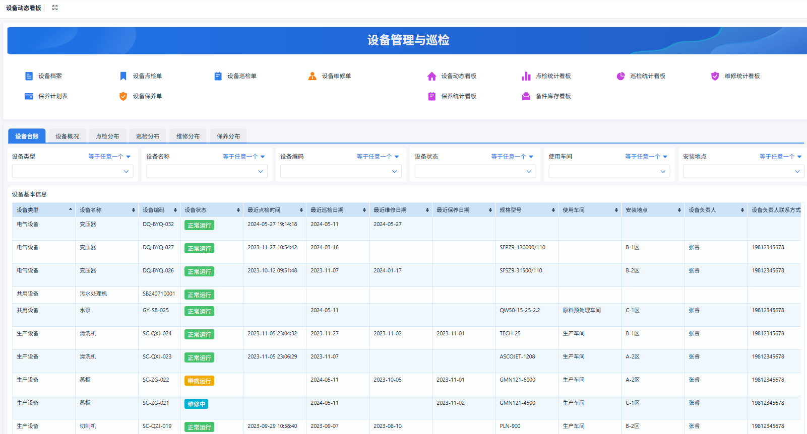 - 设备状态统计:展示正常、待维护、故障设备的数量。