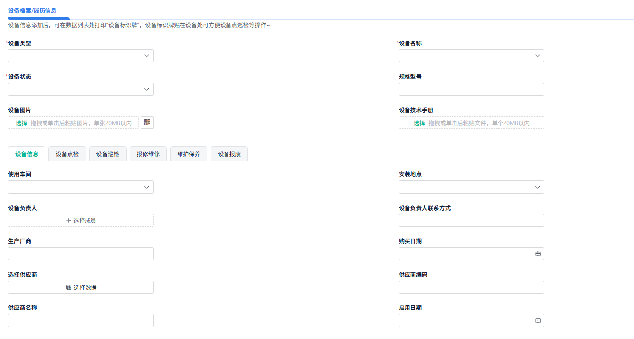 设备管理系统的底层逻辑是通过表单和流程实现的。以下是关键表单的设计方法和配置技巧:
