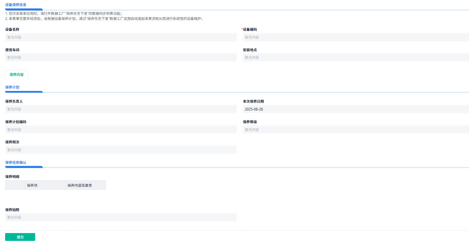 - 设备编号:关联“设备档案”表单,自动填充设备信息。