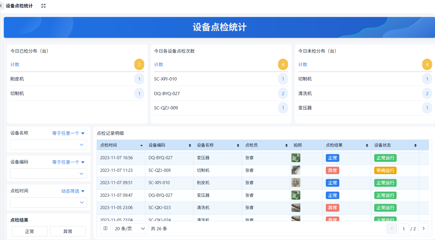 - 点检次数趋势:按月展示点检完成情况。