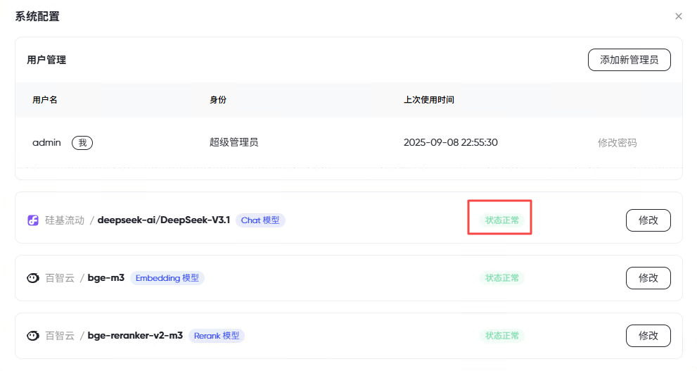 登录后,系统提示需要配置AI模型。这是PandaWiki的核心功能,必须要设置。