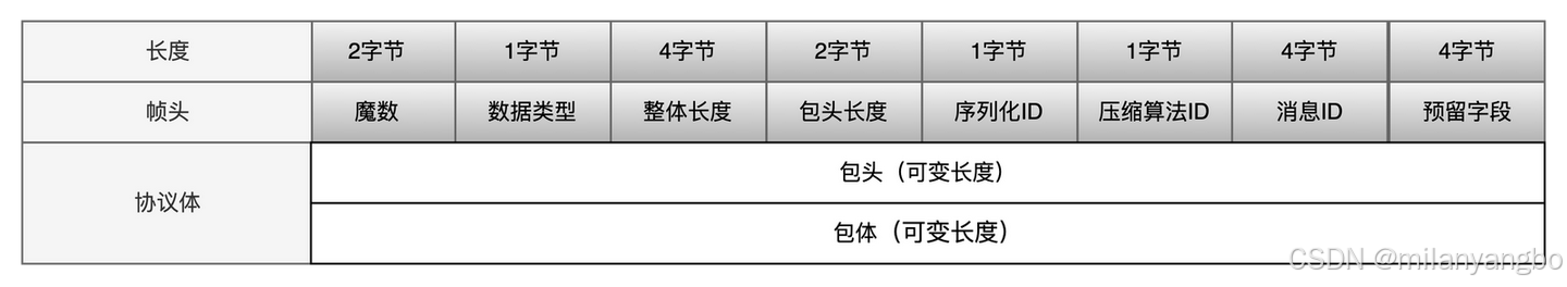一个完整的RPC协议设计如上,帧头一共19字节。