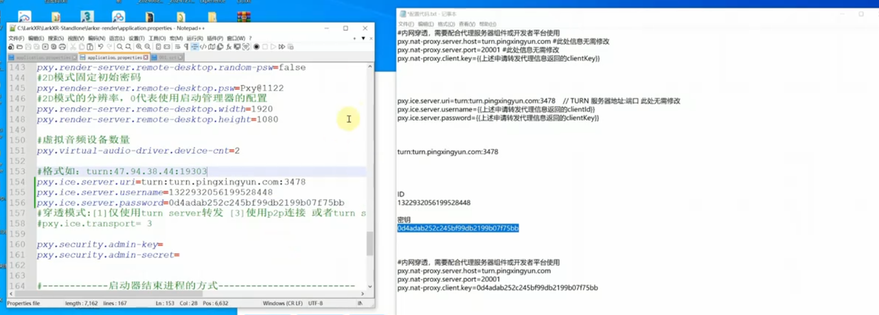 4.配置LarkXR 渲染服务器 ICE Server 在 larkxr-render/application.properties 文件中增加以下配置: