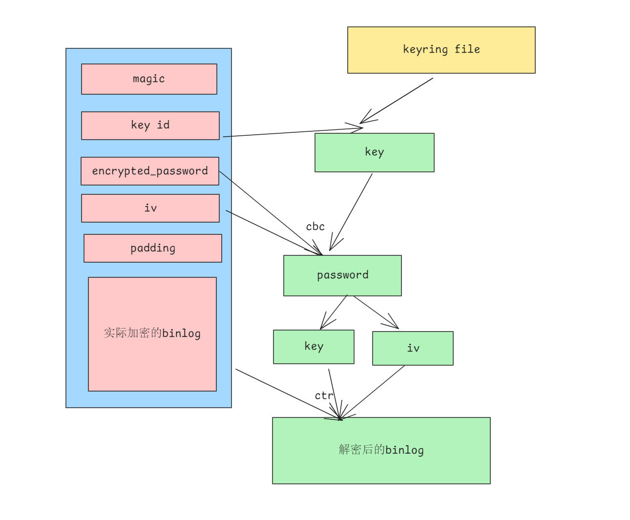 加密之后的binlog也不算复杂, 毕竟之前ibd的加密也和这类似, 都是记录key和iv之类的信息.