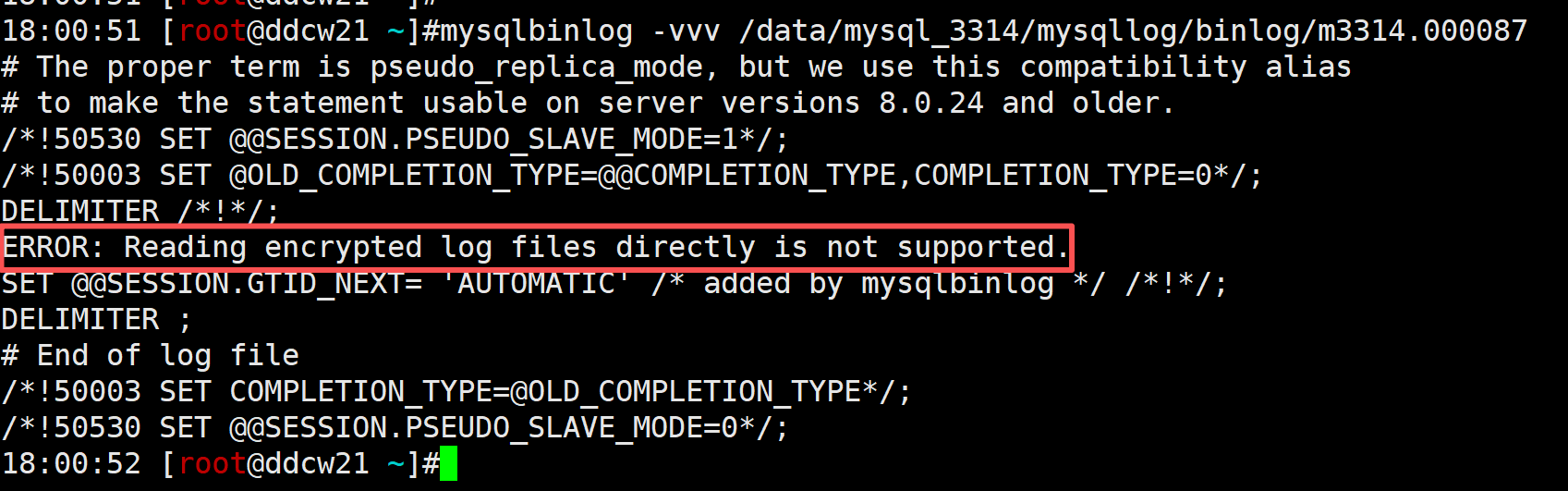 命令解析的话, 会报错ERROR: Reading encrypted log files directly is not supported.