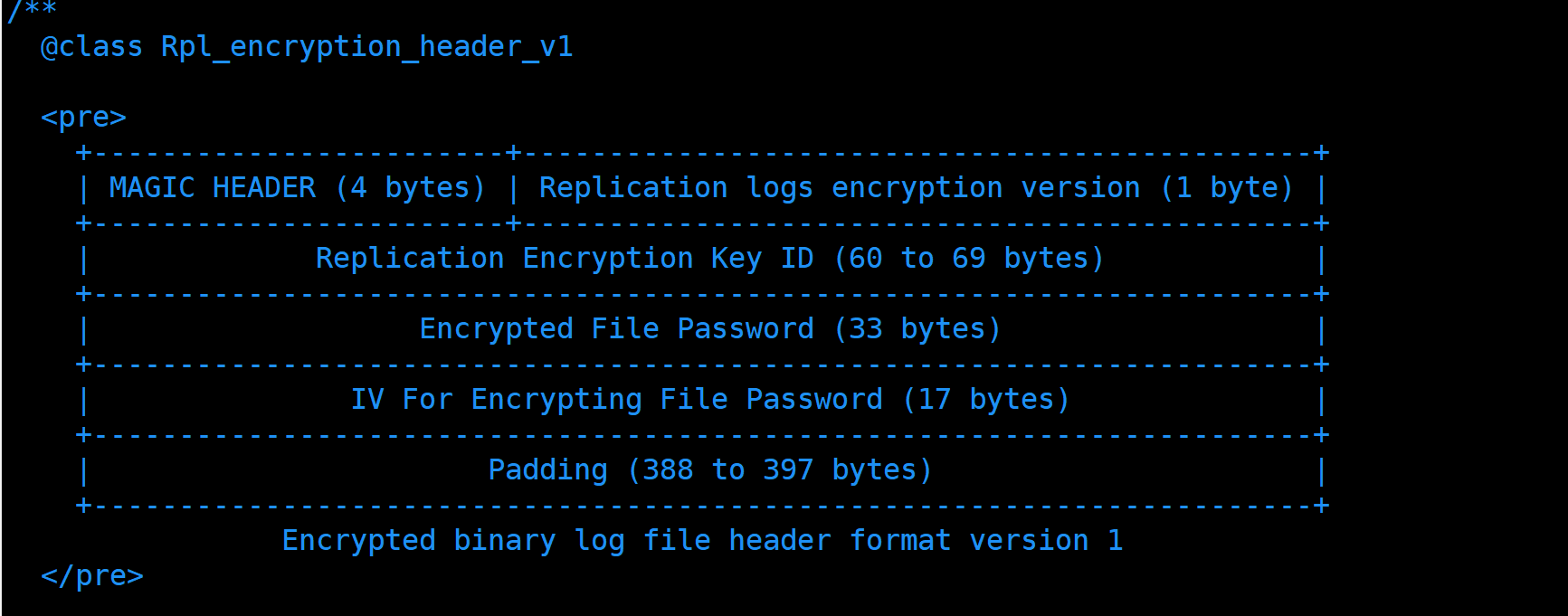 我们先来看看binlog加密之后的结构吧. mysql源码(sql/rpl_log_encryption.h)里面就有相关的文档: