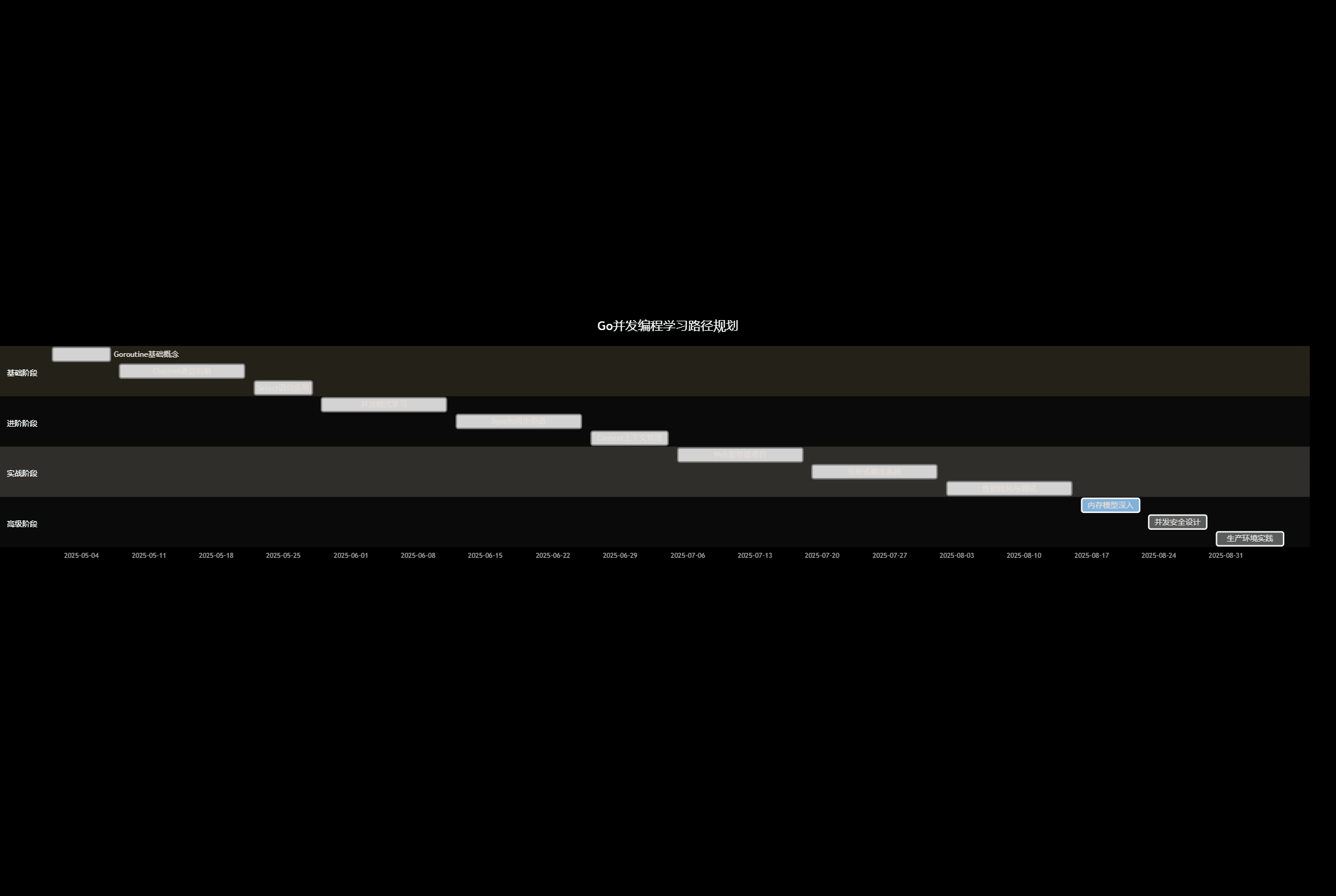 图1:Go并发编程学习路径甘特图 - 12周系统化学习计划安排