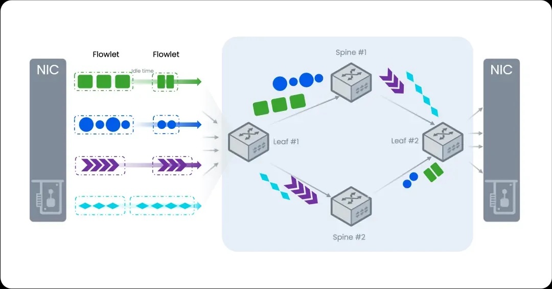 基于子流的负载均衡不仅实现对数据流的精细划分与均衡分发,还能保持报文的时序性。RoCE交换机所支持的ARS(Adaptive Routing and Switching)技术即为典型代表,其利用ASIC硬件提供的ALB(Auto-Load-Balancing)能力,实时感知链路状态并动态调整路由,从而改善拥塞、提升带宽利用率。