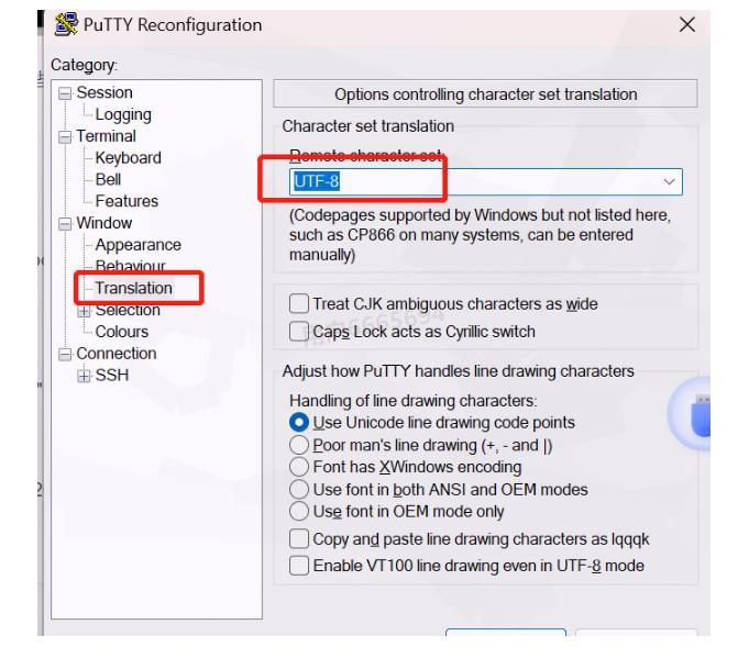 当您在使用PuTTY连接Linux服务器时可能会遇到中文显示乱码的情况。解决方法很简单:鼠标右键点击窗口顶部,选择"Change Settings",导航到"Translation"选项,在"Received data assumed to be in which character set"的下拉菜单中选择"UTF-8"即可。