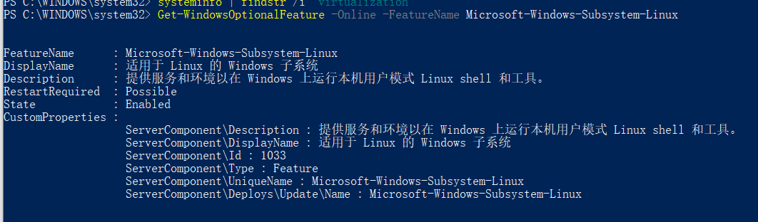 Get-WindowsOptionalFeature -Online -FeatureName Microsoft-Windows-Subsystem-Linux
