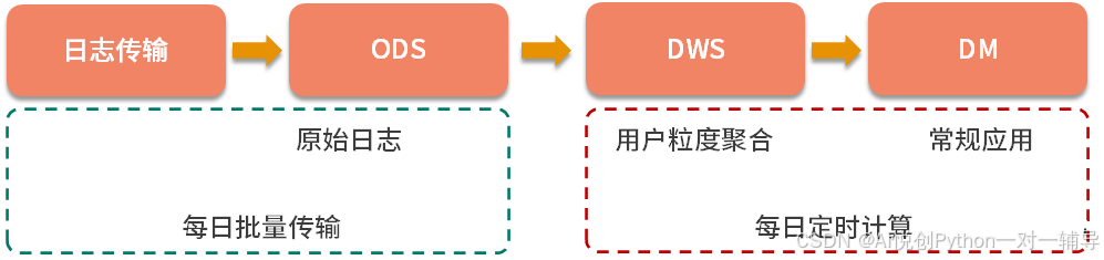 - ODS(操作数据层):原始日志的初步加工,过滤掉明显不合理数据。
