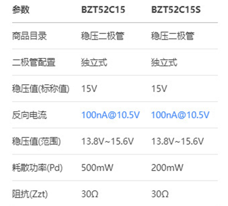 在电子电路设计中,稳压二极管是保护敏感元件和提供稳定参考电压的关键器件。长晶科技(CJ)推出的BZT52C15与 BZT52C15S稳压二极管以其稳定性和通用性,在消费电子、工业控制等领域广泛应用。本文将从参数对比及应用场景维度,剖析这两款型号的异同,为选型提供参考。