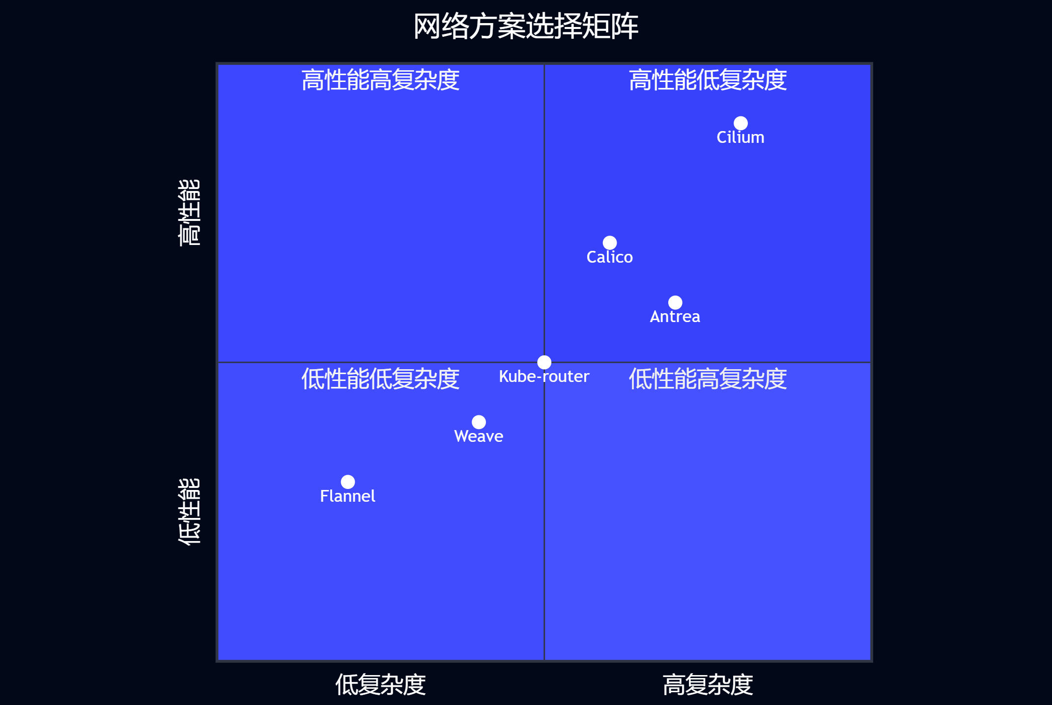 图5:网络方案选择象限图(Quadrant)- 帮助根据性能和复杂度需求选择合适的网络方案