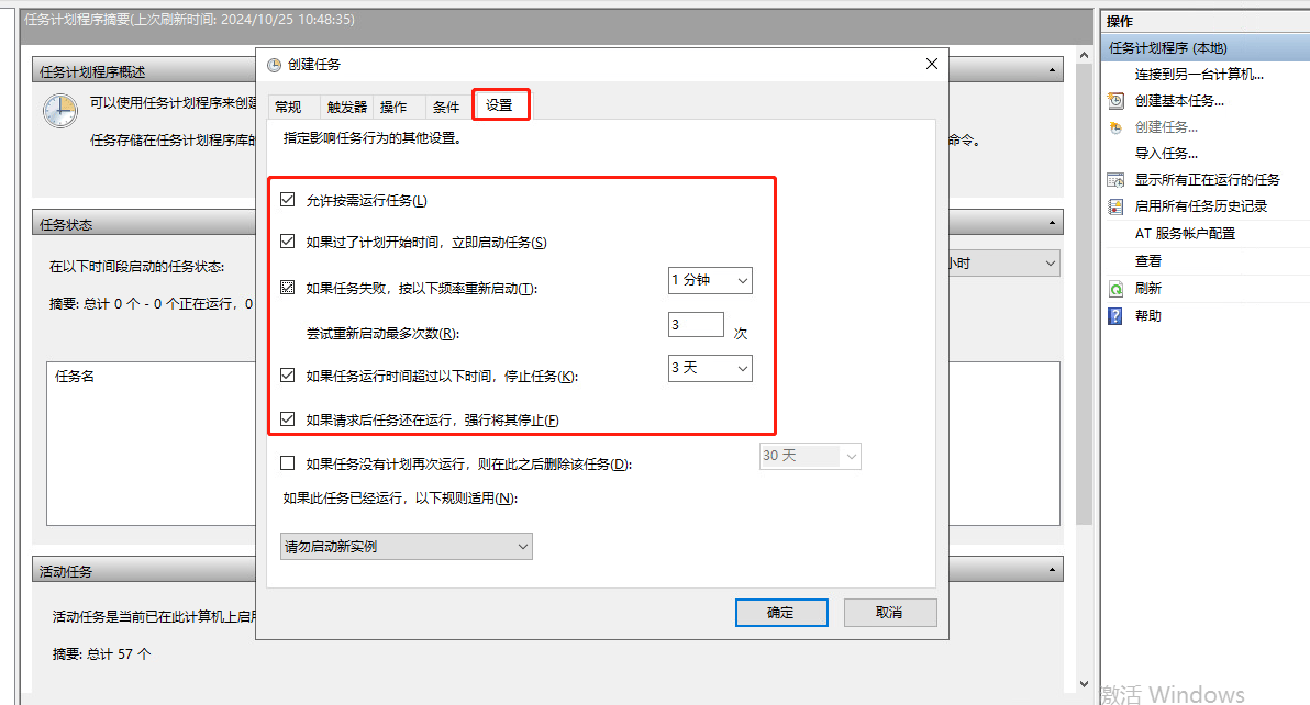 最后在创建任务窗口的 "设置" 界面中,按如下图勾选选中,然后点击确定,输入服务器密码,完成ZeroNews 启动认为的创建