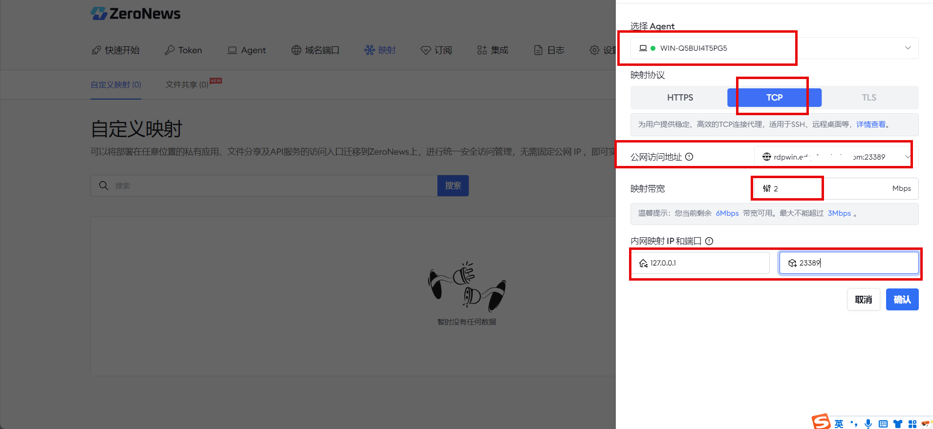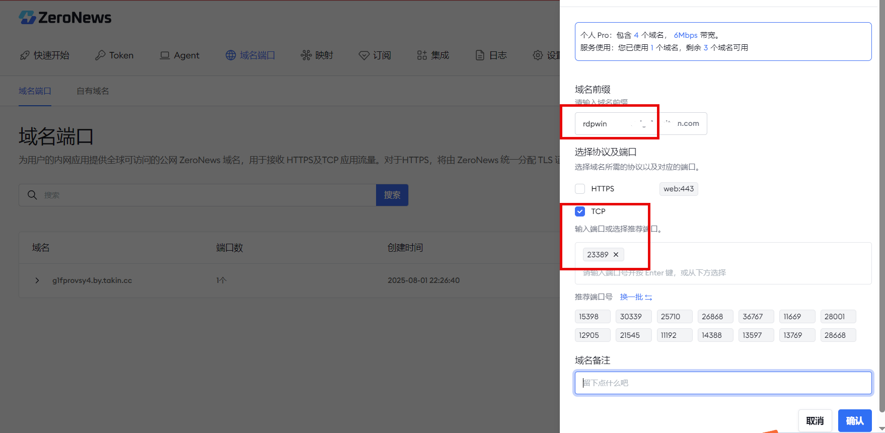 第4步:为远程桌面分配公网域名及端口