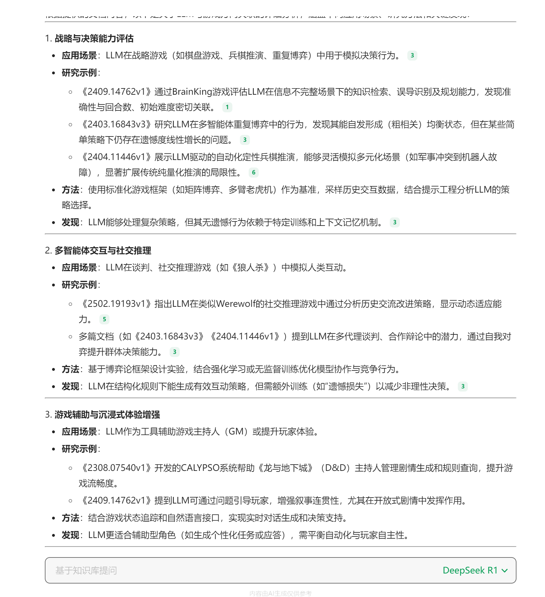 例如研究 “LLM 与游戏方向” 的交叉点,让 IMA 自动分析论文,生成多角度联系。