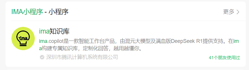 IMA 最大的优势在于与 微信小程序深度融合。读到的文章可一键保存到 IMA 并自动总结,无需手动整理。