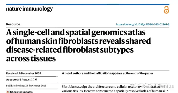 单细胞空间--人类皮肤成纤维细胞单细胞与空间基因组学图谱揭示跨组织共享的疾病相关成纤维细胞亚型