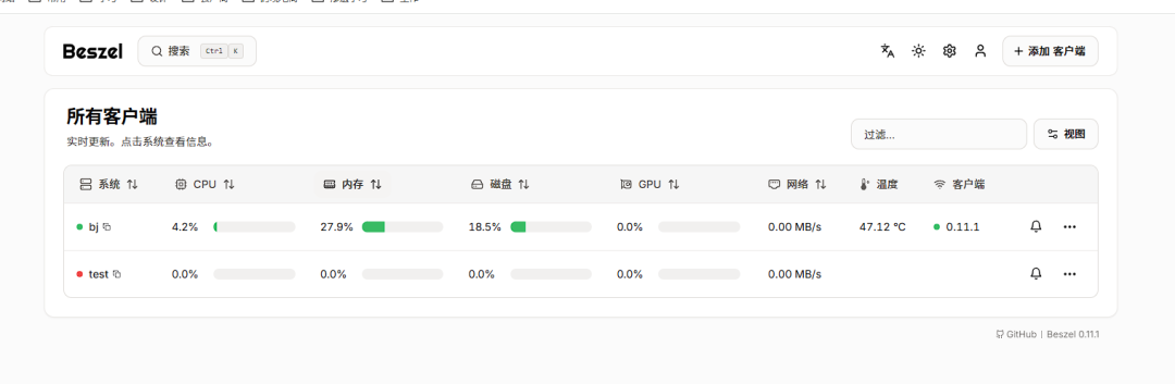 如果你有几台VPS跑着个人项目,Beszel能让你随时了解服务器状态,及时发现问题。