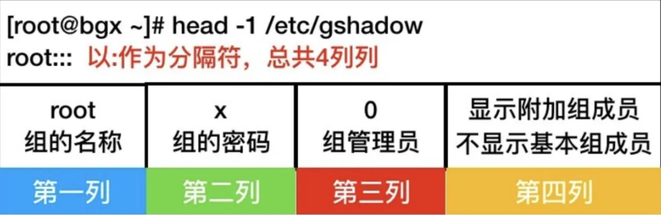 跟用户密码一样,组密码也有对应的shadow文件。不过现在组密码用得很少,这个文件主要是为了兼容性保留的。