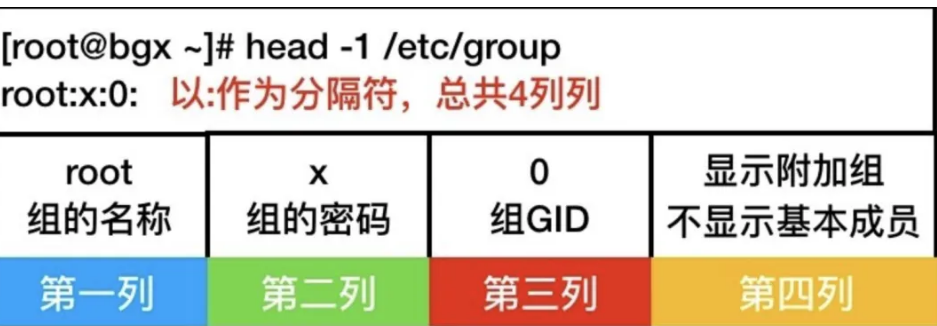 用户组信息存储在/etc/group文件里,格式相对简单: