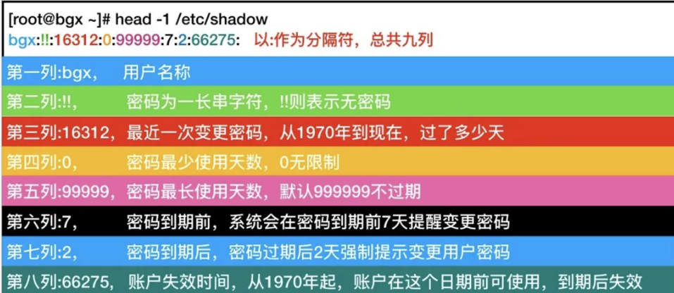 shadow文件的格式比passwd复杂一些: