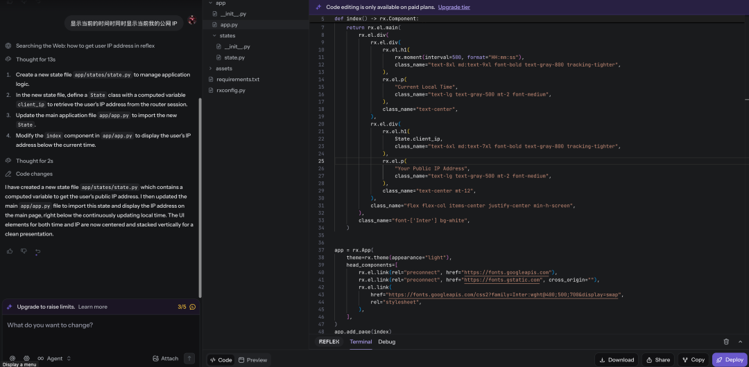 Reflex官网内置的AI编程助手集成了 AI Agent!