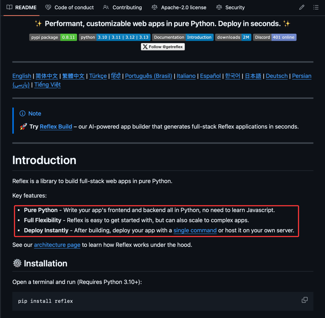 最让我信服的是——Reflex的官方网站本身就是完全使用Reflex框架构建的!这意味着什么?这意味着这个框架足够强大和成熟,连自己的官网都能搞定,还有什么项目做不了?
