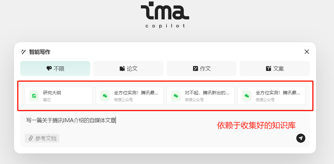 IMA 的知识库基于“混元大模型 + RAG”架构。借助大模型的强大理解与生成能力,再结合外部知识库的补充,无需额外微调,就能实现精准回答。简单来说,先用知识库丰富 AI 的“脑容量”,再由大模型完成理解与生成。