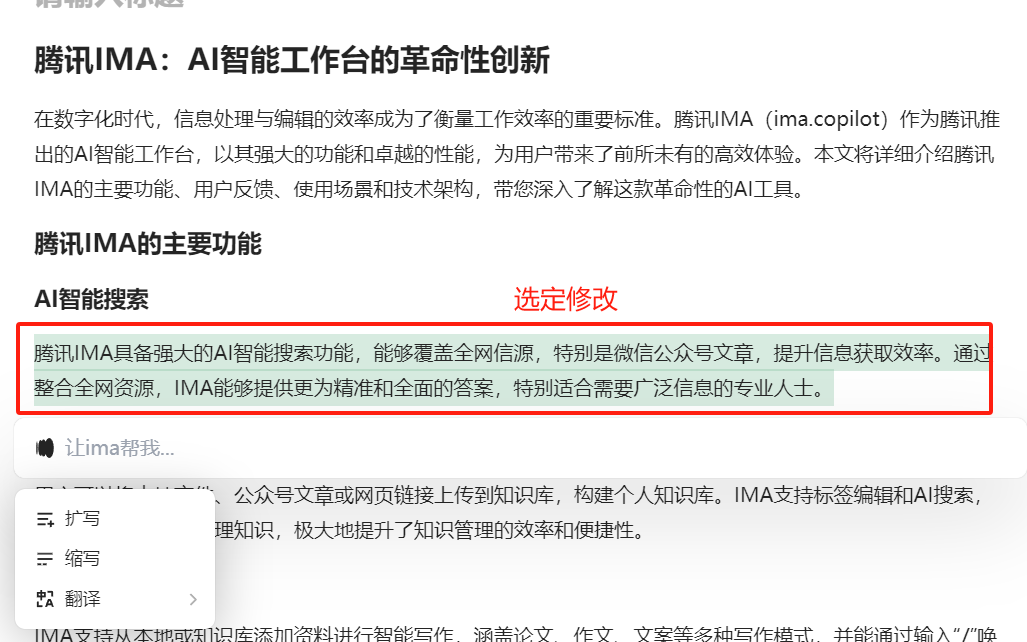 目前 IMA 还处于 1.0 版本,部分功能有待完善。例如:
