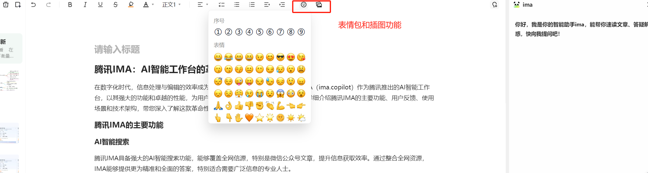 此外,IMA 还支持在笔记中插入插图、表情包,体验上更贴近一个 AI 驱动的智能笔记本: