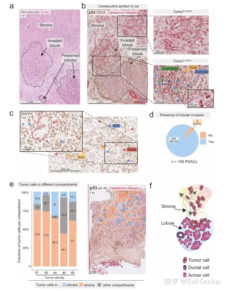 分析显示小叶侵袭比例介于4%-32%,代表PDAC组织病理学原型的间质区肿瘤仍是主要存在形式;但小叶区肿瘤作为PDAC侵袭的普遍途径已然显现.