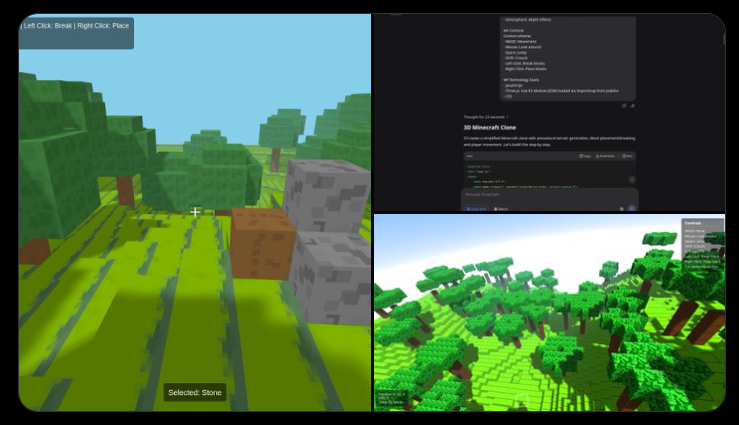 有网友测试了V3.2-Exp,用来构建一个“我的世界”游戏。可以发现V3.2对比V3.1有明显的进步