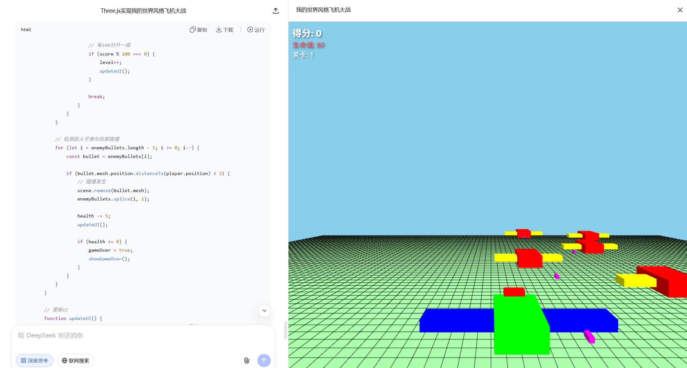 Q4:用 Three.js 实现一款“我的世界风格”的3D飞机大战。