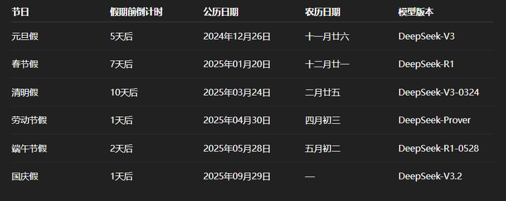 看看历年来的DeepSeek模型,基本都卡在过节前,这如果要适配下游任务的话,一天时间根本来不及拉