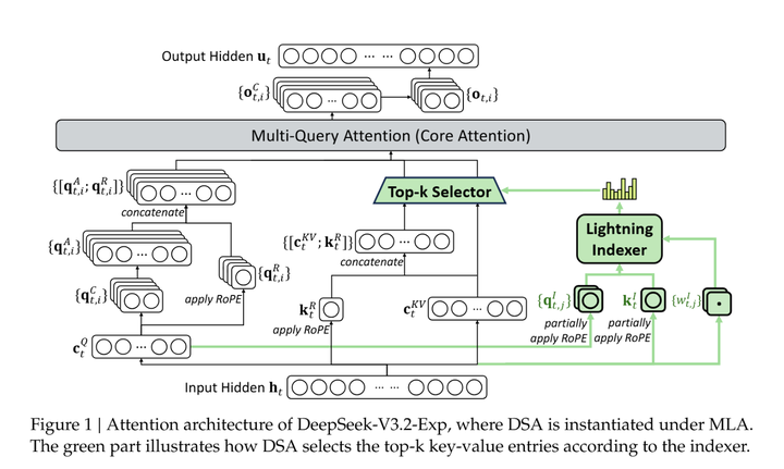 Lightning Indexer:给定一个 query token ,它会和之前的 token计算一个轻量的 index score。