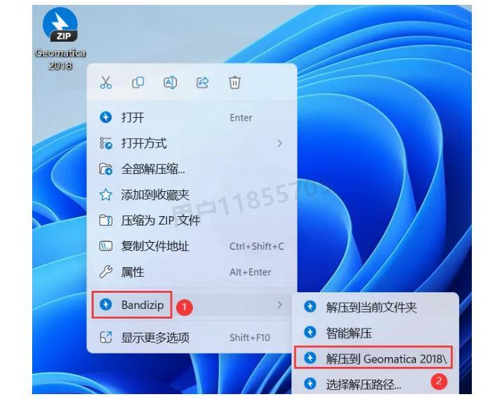 先把下载好的Geomatica 2018安装包保存到电脑上,然后右键选择【解压到Geomatica 2018\】。我一般习惯把这种大型软件的安装包放在D盘,这样不会占用系统盘的空间。