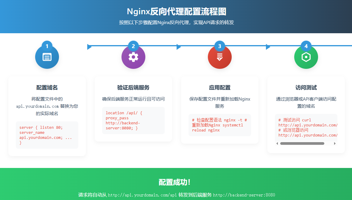 4、访问 http://api.yourdomain.com/api,请求会自动转发到后端服务。