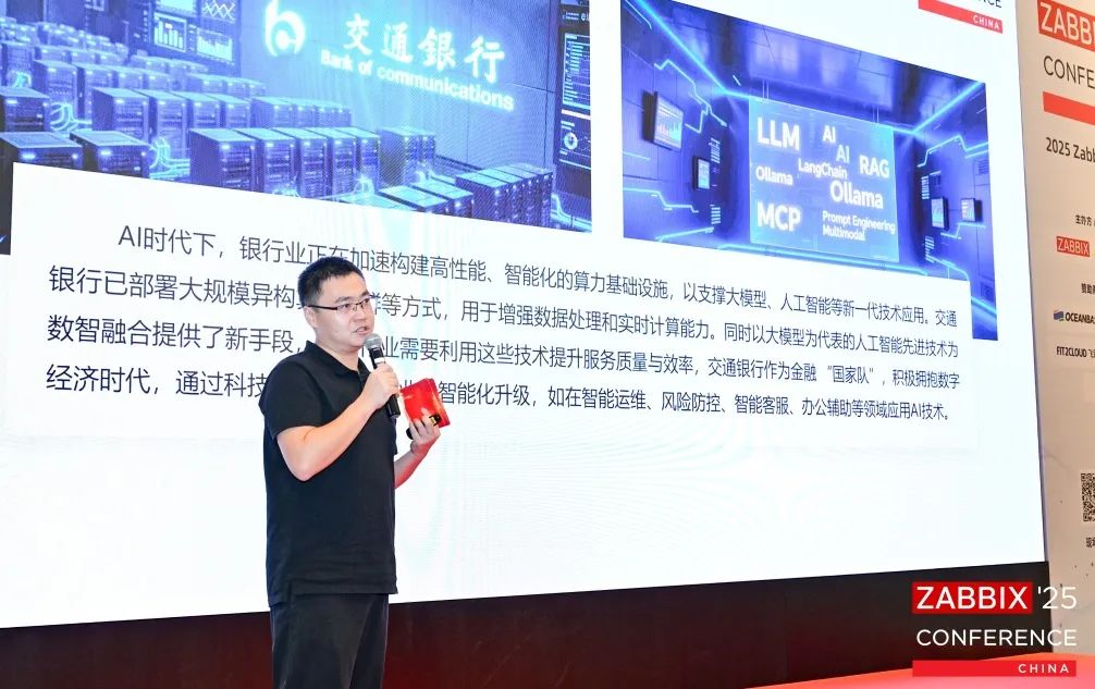 来自交通银行数据中心的施翔分享了Zabbix在金融行业的应用。交行通过对Zabbix的使用,结合AI与MCP协议,实现了对Zabbix系统健康度的智能化洞察,为未来更多AI驱动的运维场景奠定了基础。