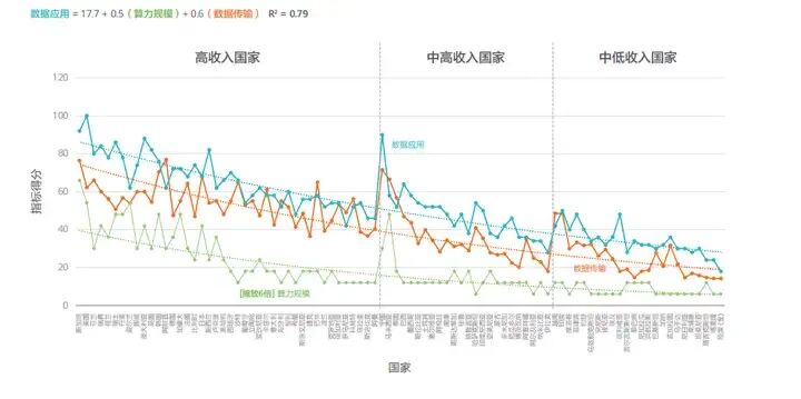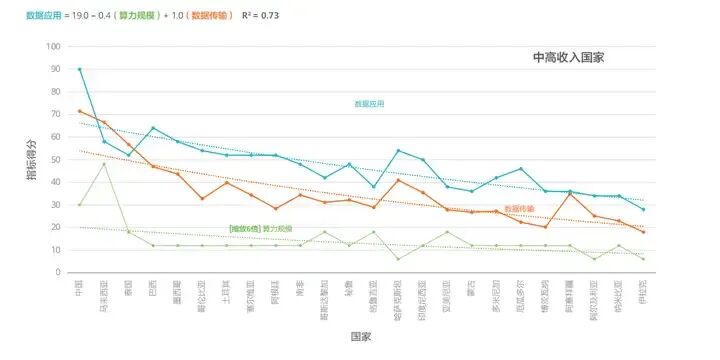 中高收入国家:两极分化严重,部分国家“应用”超前于“生成”。