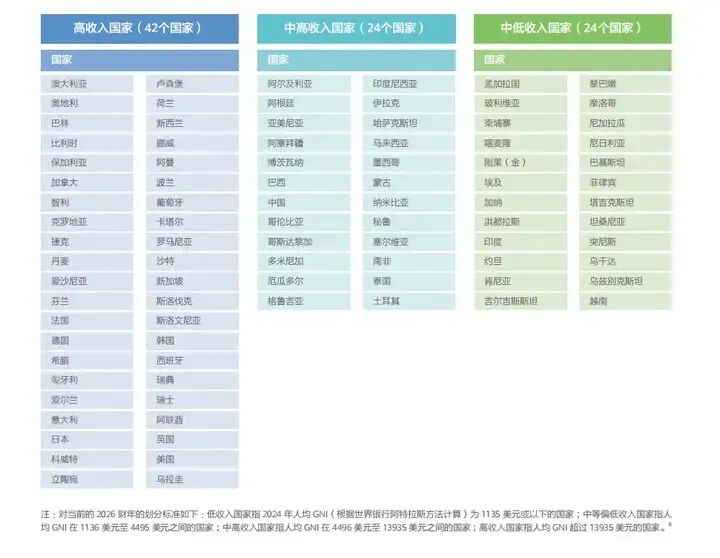 行动方向 | 高收入国家 | 中高收入国家 | 中低收入国家 |