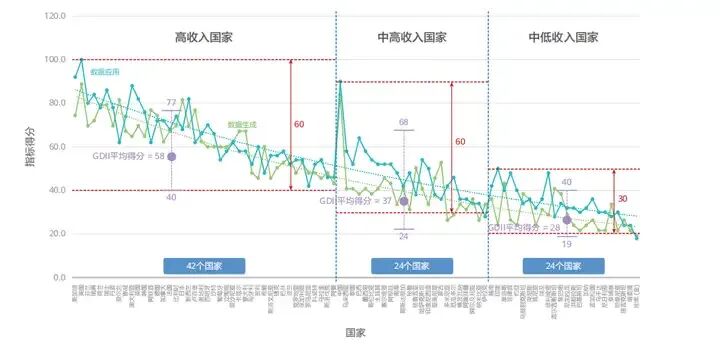 数据双螺旋结构:数据生成与数据应用相互促进,形成“双螺旋”。经济发展水平越高,两者差距越小,协同效应越强。