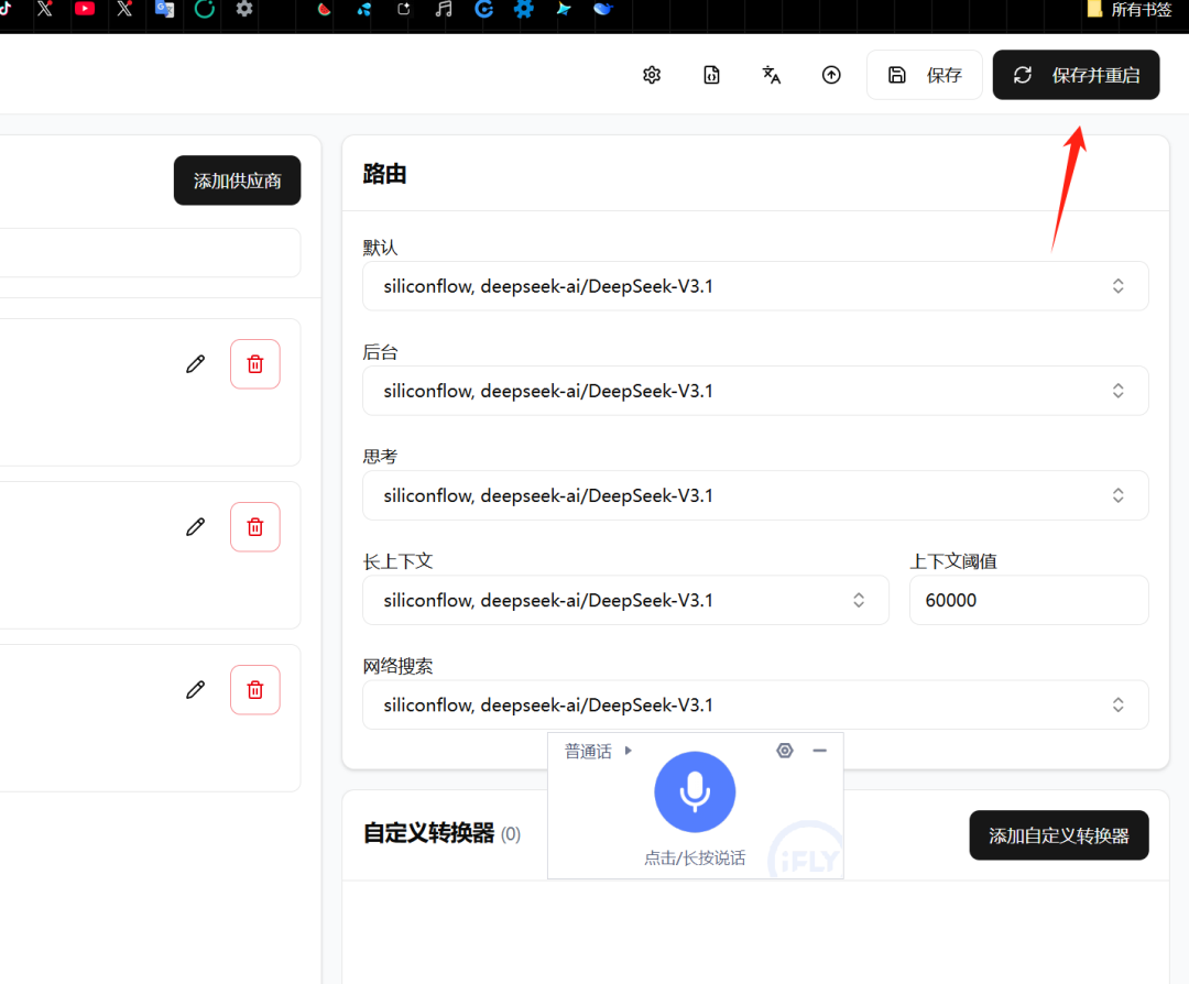 每次在前端更改模型配置的时候,记得保存更新重启:
