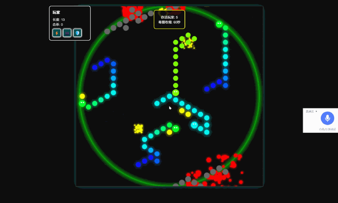 每条蛇都有独特的皮肤效果(霓虹、像素、彩虹)