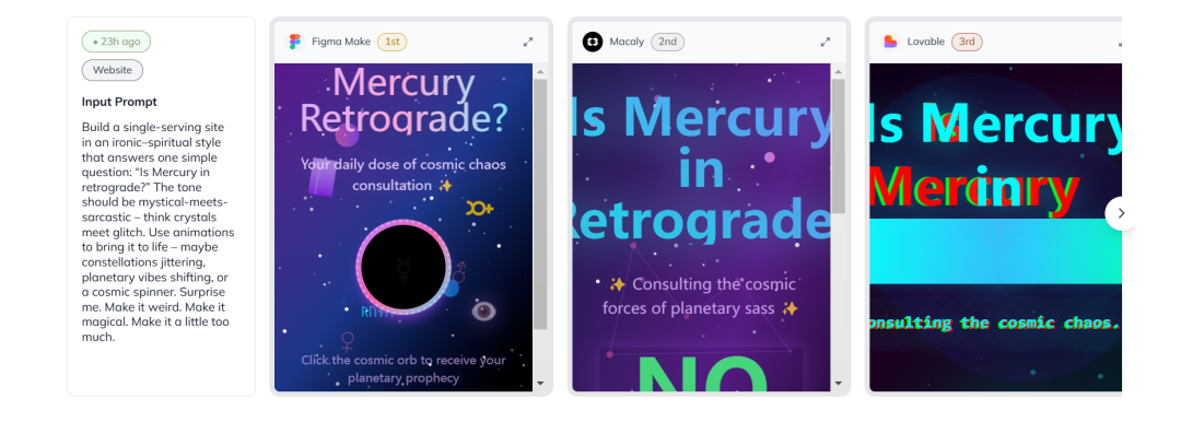 Build a single-serving site in an ironic–spiritual style that answers one simple question: “Is Mercury in retrograde?” The tone should be mystical-meets-sarcastic – think crystals meet glitch. Use animations to bring it to life – maybe constellations jittering, planetary vibes shifting, or a cosmic spinner. Surprise me. Make it weird. Make it magical. Make it a little too much.