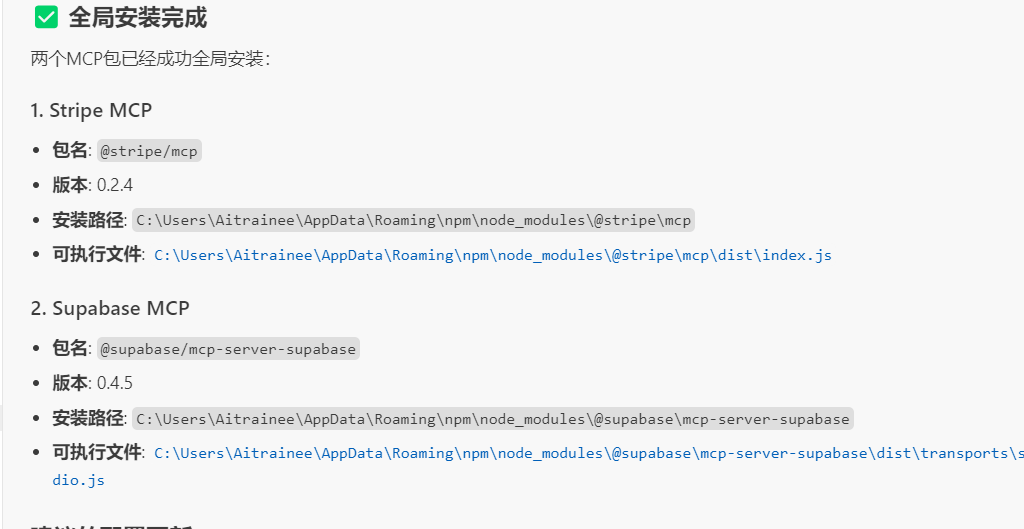 尽量先全局安装你的mcp,并且找到你安装的位置(注意这些环节的工作都可以交给ai完成,比如cursor agent):