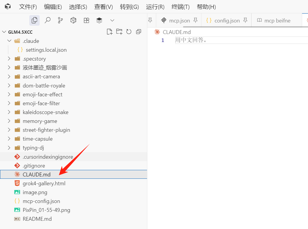 你可以再项目下创建一个Claude.md,并且填入让他用中文回答。