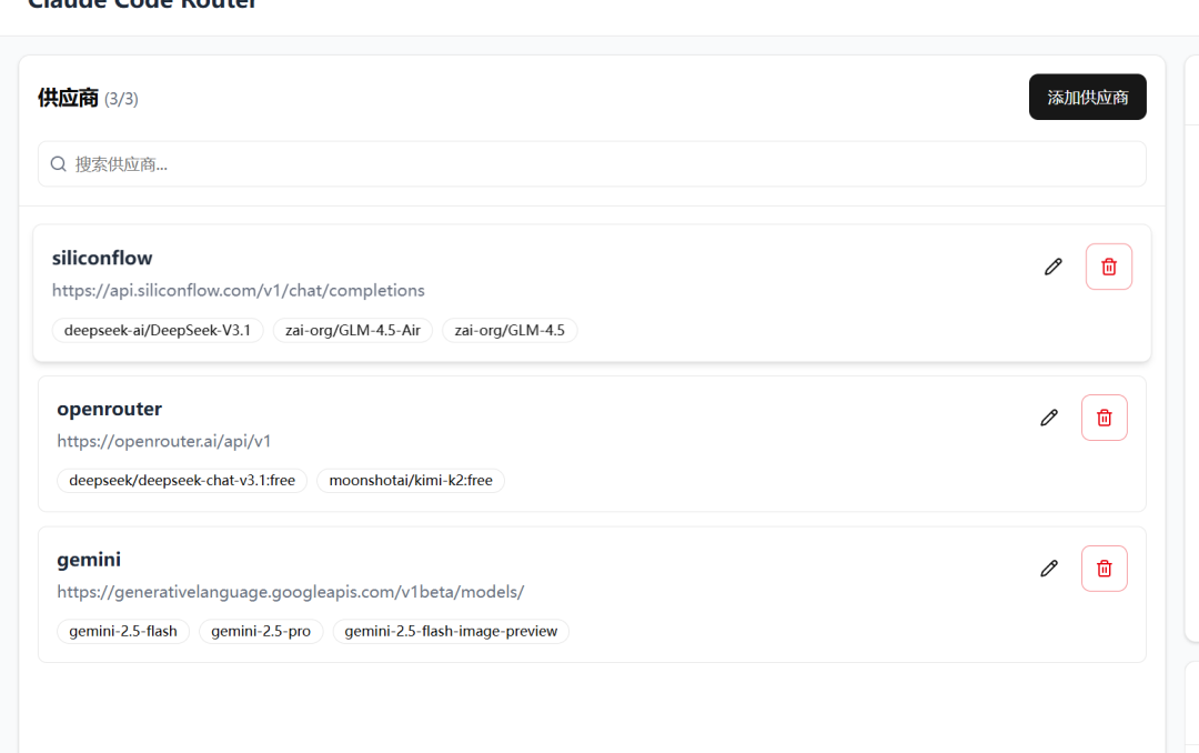 添加完供应商之后,你可以在右边的claude code路由里选择不同功能使用的何种模型。可以各大供应商混合使用。